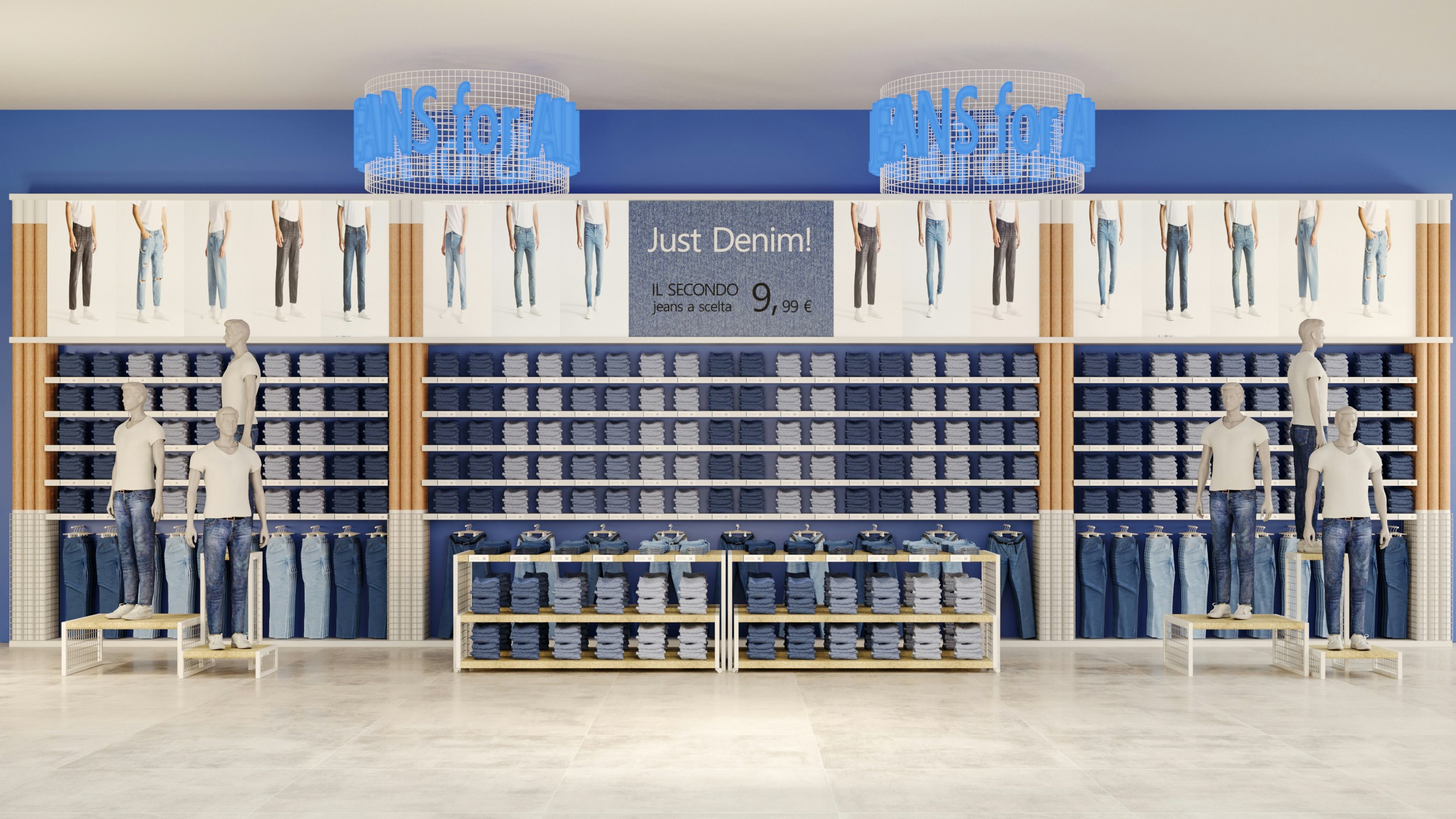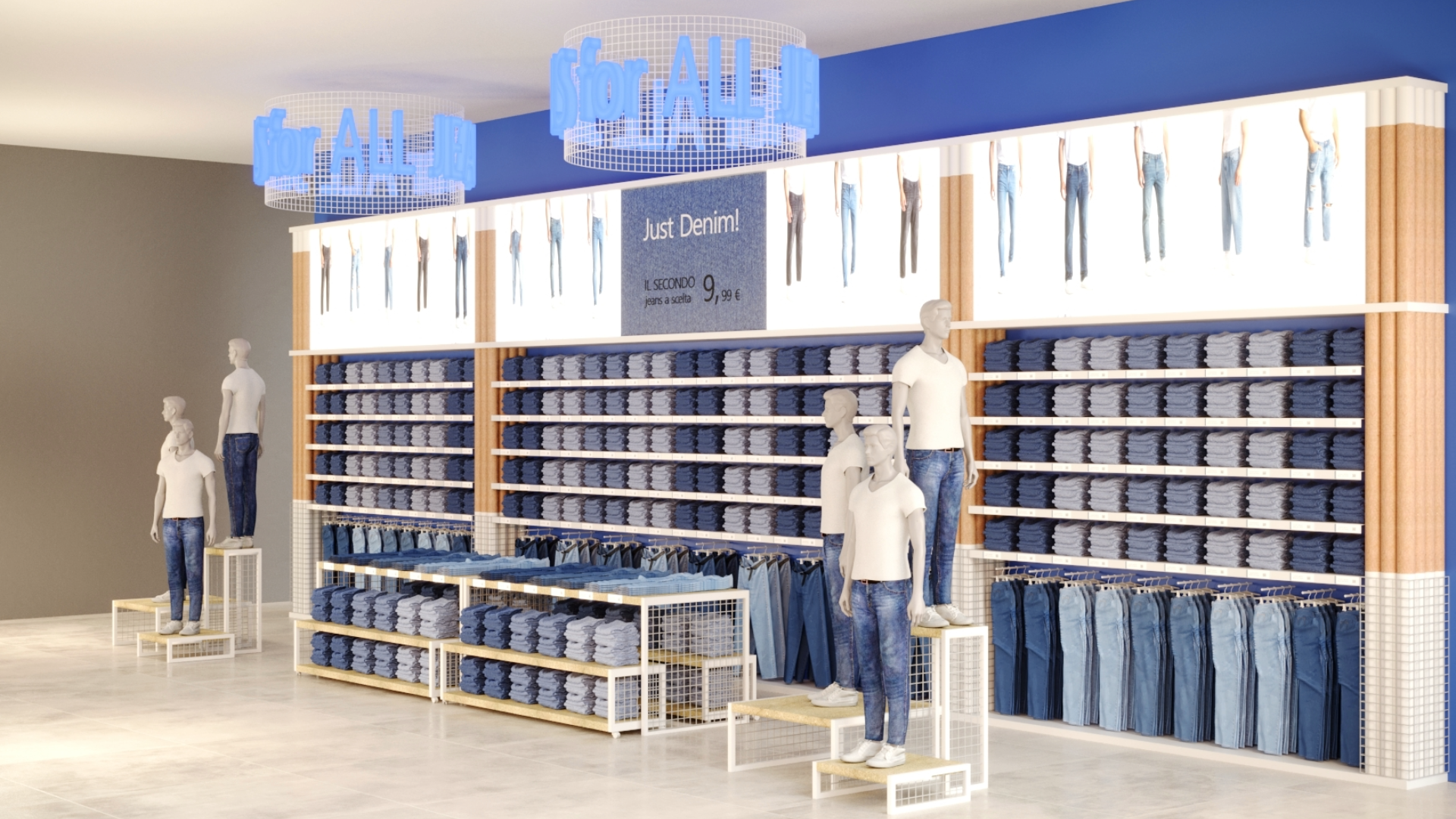 / Store conceptOur project for the Denim Area is an innovative mix of materials, colors, spaces and in-store communication, which emphasizes the identity of the brand.